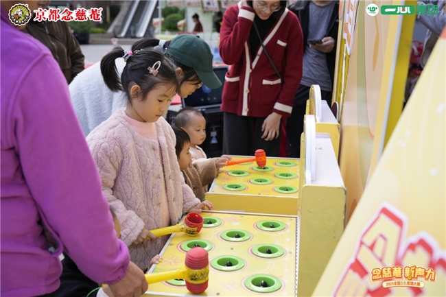“一锤定音” 趣味挑战更是不分年龄,参赛小选手、陪同家长甚至路过的小朋友都积极参与,让整个活动充满了轻松愉悦的氛围。